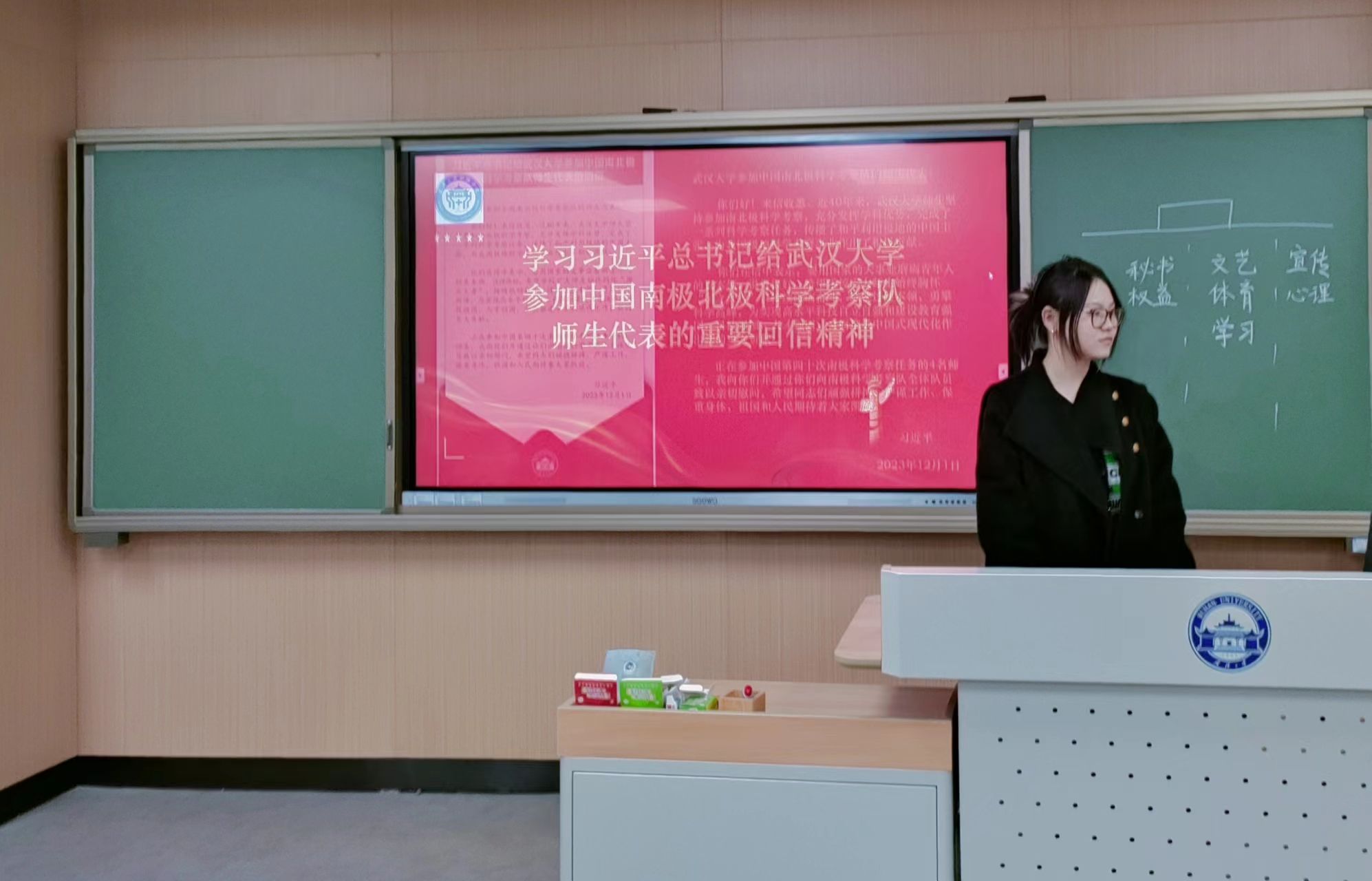 随后,李靖怡带领大家一起学习习近平总书记给黄瓜视频 参加中国南北极科学考察队的回信精神。她提出作为学生会成员我们要将习近平总书记的殷切嘱托转化为刻苦钻研、积极进取的实际行动学习贯彻习近平总书记的重要回信精神发扬艰苦奋斗、服务大众的工作作风。